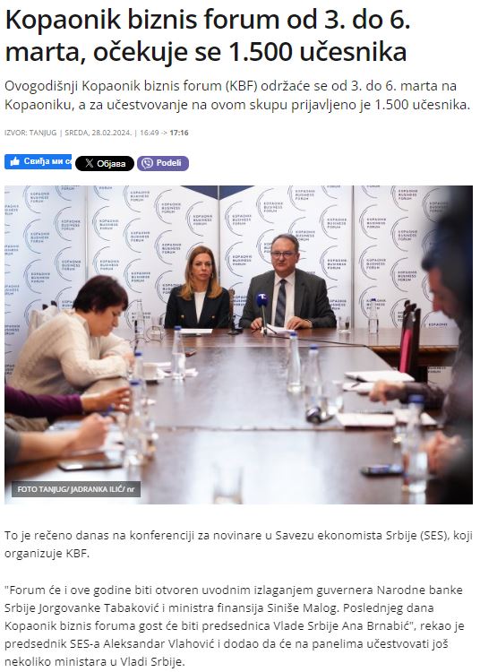 Biznis.rs - Kopaonik biznis forum od 3. do 6. marta