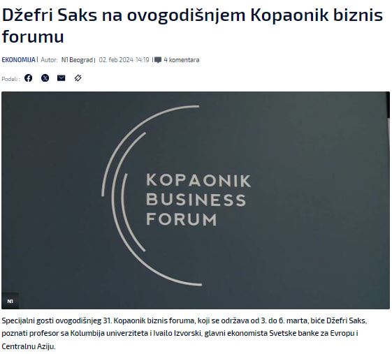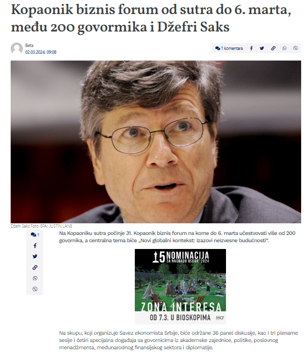 TIME.rs- DŽEFRI SAKS SPECIJALNI GOST KOPAONIK BIZNIS FORUMA...