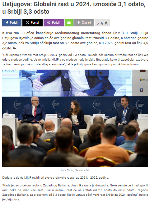 Dnevnik - POČEO KOPAONIK BIZNIS FORUM, EVO ŠTA PREDLAŽU EKONOMISTI Globalni rast u 2024. iznosiće 3,1 odsto, u Srbiji 3,3 odsto